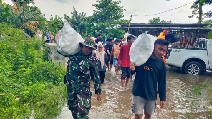 Polsek Sukatani Salurkan Bantuan Logistik ke Korban Banjir Villa Kencana Cikarang Bekasi, Bantu Pengungsi di Tengah Banjir Berkepanjangan