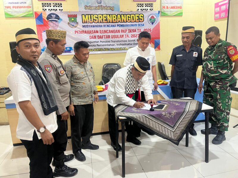 Tangerang, Nusantara Media – Aipda Ikrar D., Bhabinkamtibmas Polsek Balaraja, menghadiri Musyawarah Desa di aula Kantor Kampung Pasir RT 03/01, Desa Sentul, Kecamatan Balaraja, Kabupaten Tangerang. Kegiatan ini membahas rancangan RKPDes Tahun 2026 dan DU-RKPDes Tahun 2027.