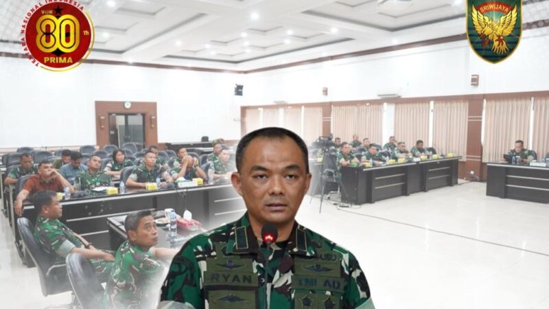 Palembang, Nusantara Media – Asrendam II/Sriwijaya Kolonel Arm Dodot Sugeng Hariadi, S.E., M.A.P., mewakili Pangdam II/Sriwijaya Mayjen TNI Ujang Darwis, M.D.A., memimpin Penutupan Reviu Penilaian Reformasi Birokrasi (RB) Tingkat Kotama TNI AD 2025. Acara berlangsung di Aula A.H. Nasution, Makodam II/Sriwijaya, pada Jumat (3/10/2025).