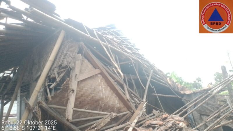 Karawang, Nusantara Media – Bencana angin kencang disertai hujan deras menerjang Kampung Wagir 2, Desa Bengle, Kecamatan Majalaya, Kabupaten Karawang, Jawa Barat, pada Selasa, 29 Oktober 2025, pukul 15:00 WIB. Kejadian ini menyebabkan satu rumah mengalami kerusakan berat, dengan taksiran kerugian mencapai Rp75 juta.