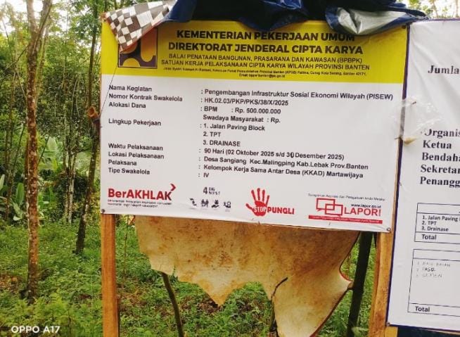 Investigasi media berhasil membongkar praktik korupsi material di Proyek Pengembangan Infrastruktur Sosial Ekonomi Wilayah (PISEW) Desa Sangiang, Kecamatan Malingping, Kabupaten Lebak, Banten. Akibatnya, Kementerian Pekerjaan Umum dan Perumahan Rakyat (PUPR) yang mengalokasikan Rp500 juta untuk proyek ini, kini menghadapi ancaman serius terhadap keselamatan infrastruktur dan lingkungan nasional.