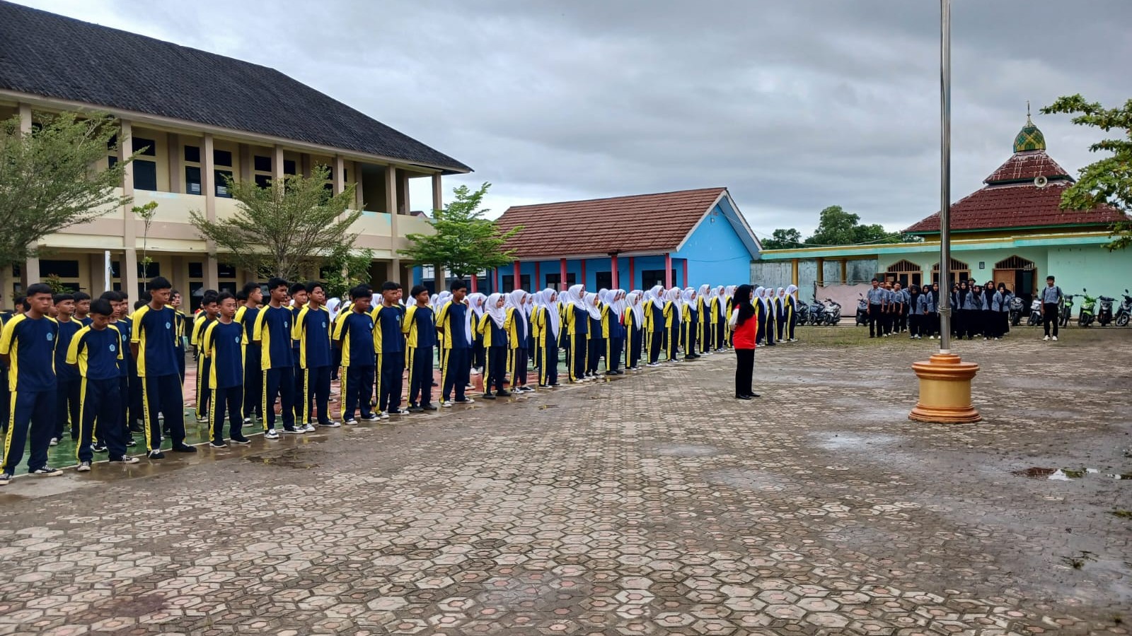 Guru pembimbing Mirhad, S.T., menjelaskan bahwa pelatihan berlangsung dua hari, 29-30 Oktober 2025. “Kami menanamkan nilai disiplin, tanggung jawab, dan nasionalisme sejak dini,” ujarnya.