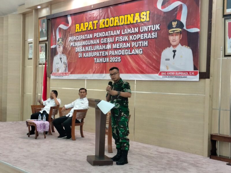 Pandeglang, Nusantara Media – Kodim 0601/Pandeglang bersama Pemerintah Kabupaten Pandeglang menggelar Rapat Koordinasi (Rakor) Percepatan Pendataan Lahan untuk Pembangunan Gerai Fisik Koperasi Desa/Kelurahan Merah Putih (KDKMP). Acara berlangsung di Gedung Negara Pendopo Pandeglang pada Rabu (19/11/2025).