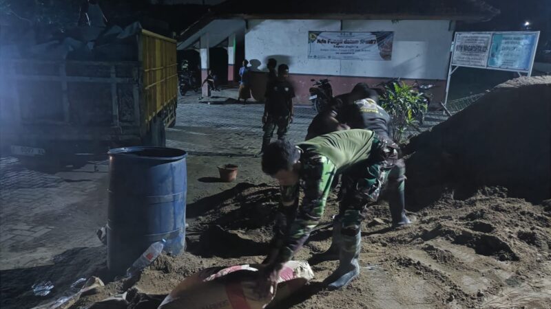Pada hari keenam TMMD ke-126 Kodim 0509/Kabupaten Bekasi, personel TNI dan warga Desa Nagacipta terus bekerja keras membangun tanggul penahan tebing di Kampung Tegal Sapi, RT 02/01, Kecamatan Serang Baru, pada Selasa malam (14/10/2025). Meski malam dingin, semangat gotong royong tetap membara.