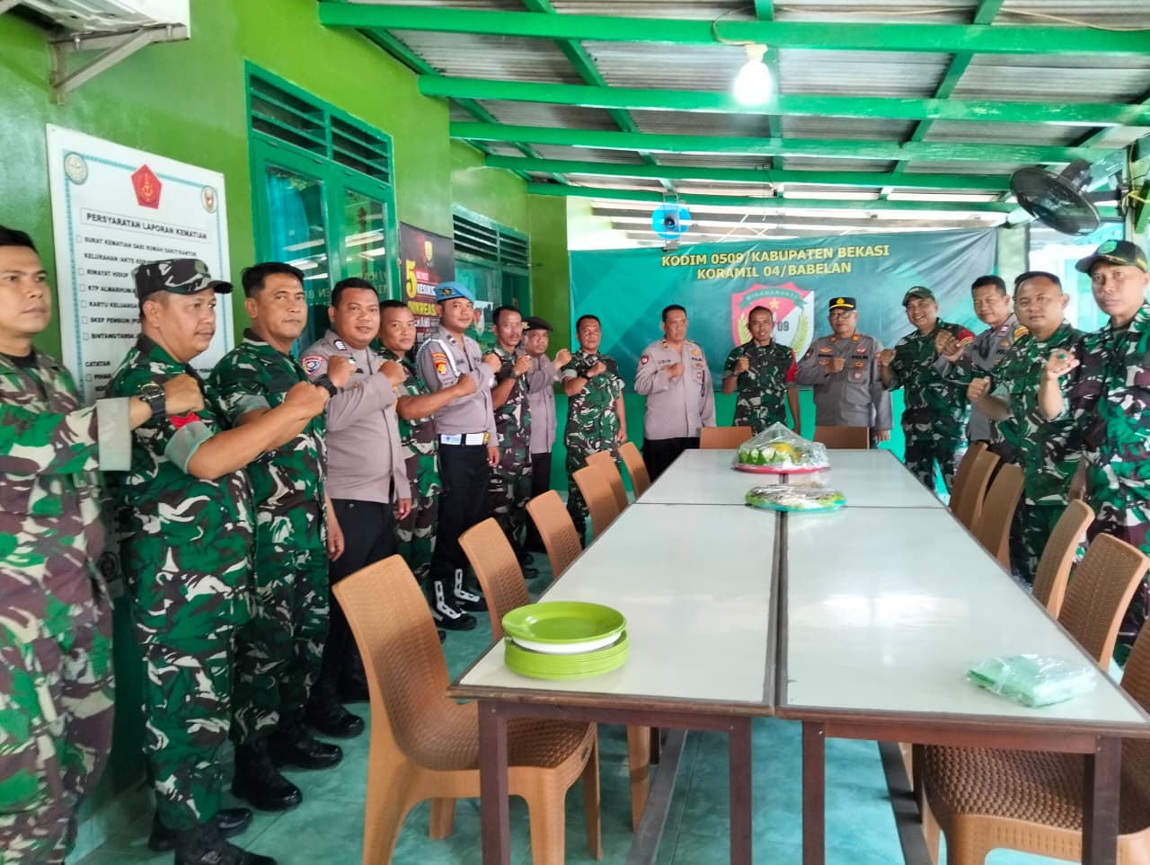 Rombongan Polsek Babelan, dipimpin Wakapolsek AKP Gunawan, tiba di Makoramil 04/Babelan dengan membawa nasi tumpeng