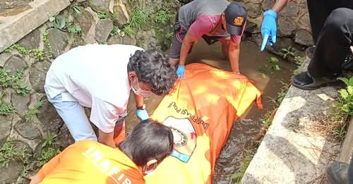 Warga Kampung Bebakan, Desa Bebakan, Kecamatan Cisaat, Kabupaten Sukabumi, Jawa Barat, geger dengan penemuan mayat perempuan di gorong-gorong saluran air pada Sabtu (11/10/2025) pagi.